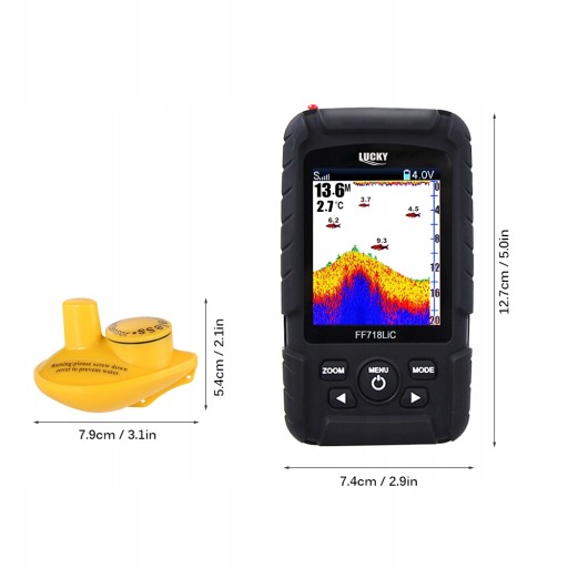 Цей ехолот розроблено з урахуванням ентузіастів риболовлі. Він може визначити розташування та розмір риби в прісній і солоній воді, а також може використовуватися як глибиномір.