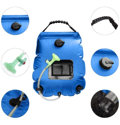Цей сонячний кемпінговий душ ідеально підходить для використання душу без газу та електрики на віддалених кемпінгах, на пляжі чи біля басейну, під час походів, полювання тощо. Він легкий, складається, його легко носити та зберігати.