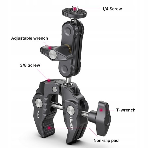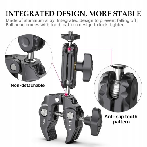 Багатофункціональний супер-затискач із вбудованим монтажним кронштейном із кульовою головкою, більш стабільний у використанні, запобігає падінню.