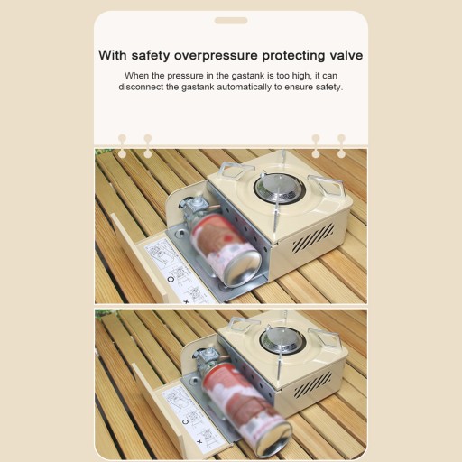 Портативна касетна плита для кемпінгу, компактна та легка, ідеально підходить для приготування їжі на відкритому повітрі, кемпінгу, пікніків, туристичних походів, походів, приготування барбекю тощо. П’єзоелектричне запалювання, висока потужність 2500 Вт, потужність вогню регулюється.