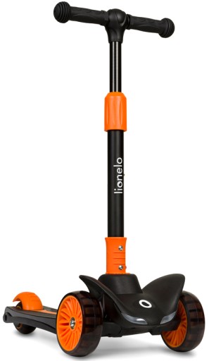 Наш скутер Lionelo Timmy Orange Black привертає увагу своїм унікальним дизайном і характерним кольором. Ми впевнені, що ваша дитина полюбить його з першого погляду, завдяки, серед іншого, світлодіодним ліхтарям, що живляться від руху, які розміщені в колесах і на платформі (батареї в платформі вистачає приблизно на 50 годин роботи) .