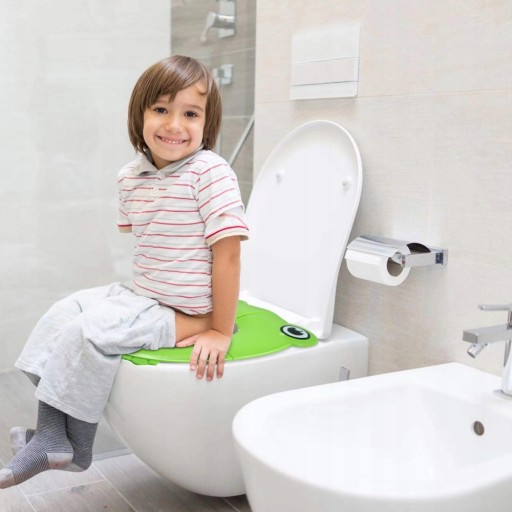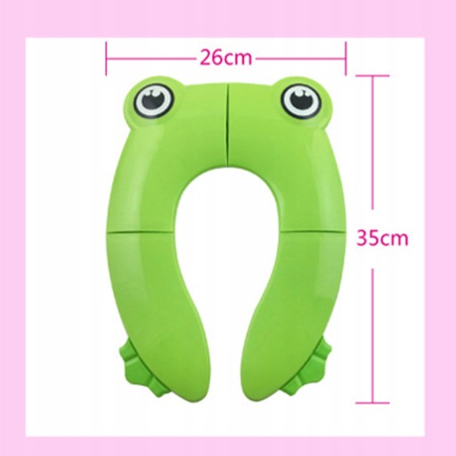 Цей чарівний візерунок жаби неодмінно викличе посмішку на обличчі вашої дитини! Допоможіть своїй дитині впевнено та легко користуватися туалетом за допомогою цього милого та веселого сидіння для унітазу у формі жаби. З великими очима та чарівним малюнком ніжок ця накидка на сидіння для унітазу, яка підходить для малюків, обов’язково розважить вашу дитину.