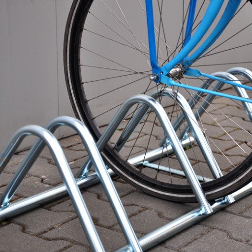 Зварна та оцинкована стійка для 4 велосипедів, виготовлена з верхніх труб діаметром 25 мм та базових труб діаметром 28 мм.