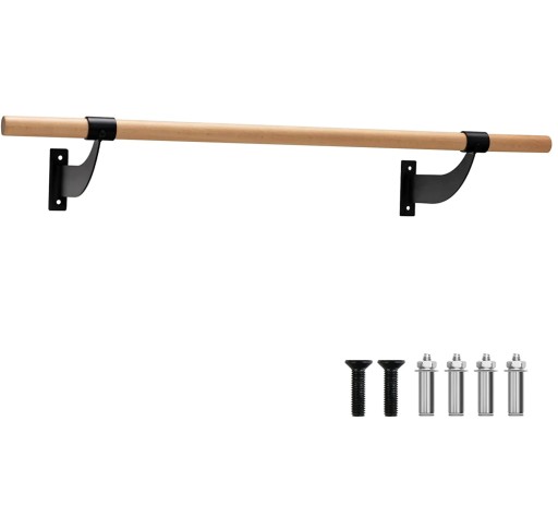 Настінну балетку можна міцно прикріпити до стіни для додаткової стійкості. Це дуже легко встановити, просто прикріпіть дерев’яну штангу за допомогою 2 металевих кронштейнів, а потім прикріпіть балетну штангу до стіни за допомогою розпірних гвинтів. Ви можете встановити їх у гуртожитку, будинку, тренажерному залі, танцювальній студії, школі чи де завгодно.