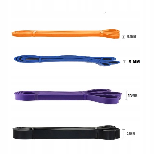 - ✔️ Різна товщина та стійкість створюють багато можливостей для тренувань для всіх вікових груп. Не бійтеся експериментувати, ви можете поєднувати гумки, щоб отримати різні опори,