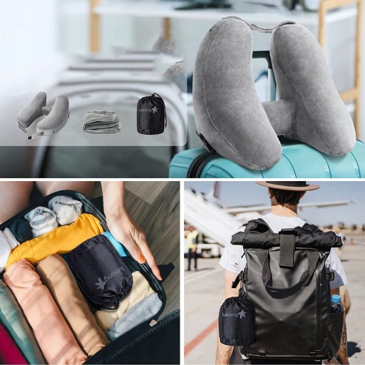 - Портативна шийна подушка: у комплект входить сумка для зберігання зі шнурком, надувна подушка дуже маленька в спущеному стані, її можна помістити в сумку для зберігання та покласти у валізу чи рюкзак, не збільшуючи тягар. Подушка для подорожей - найкращий супутник у подорожі, вона допоможе розслабити ваше тіло та зробить вашу подорож приємнішою!