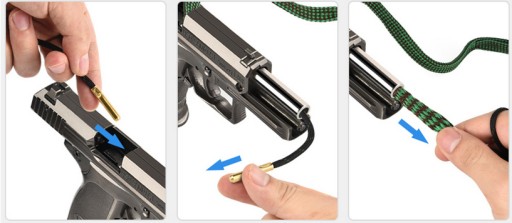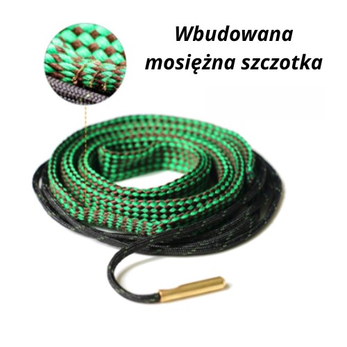 Очищувач мотузки призначений для ретельного видалення бруду, осаду та залишків стрілянини. Завдяки особливій конструкції забезпечує ефективне та швидке очищення стовбура.