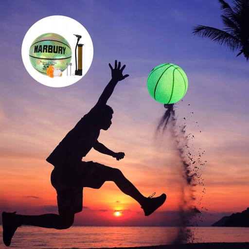 Світиться баскетбольний м'яч виготовлений з ПУ. Тонка робота робить його міцним і його нелегко носити. Може запропонувати вам довгострокове обслуговування. Його можна придбати на подарунок хлопчикам-підліткам, яким привабливий зелений колір і флуоресцентний малюнок на його зовнішньому вигляді.