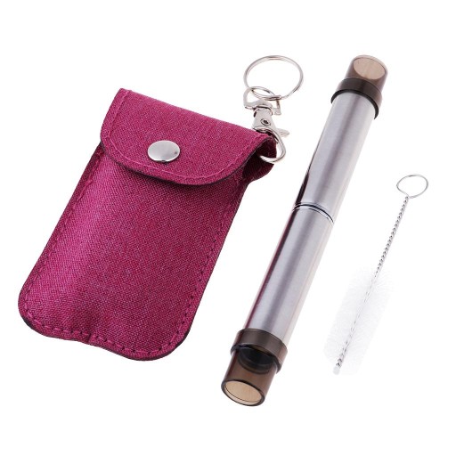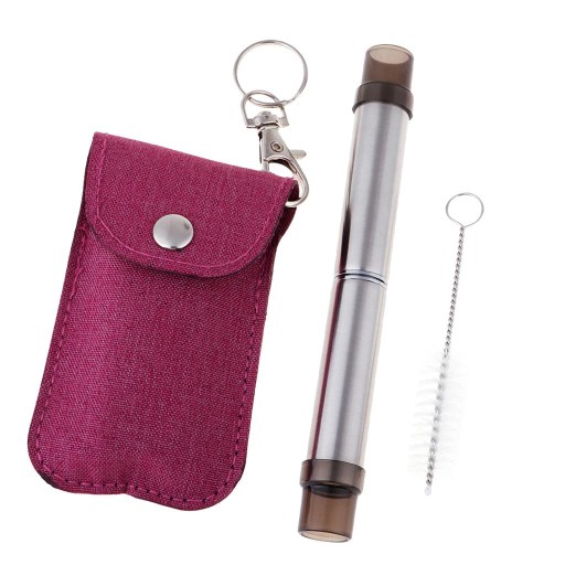 Складна соломинка для пиття з нержавіючої сталі з рожевою ручкою