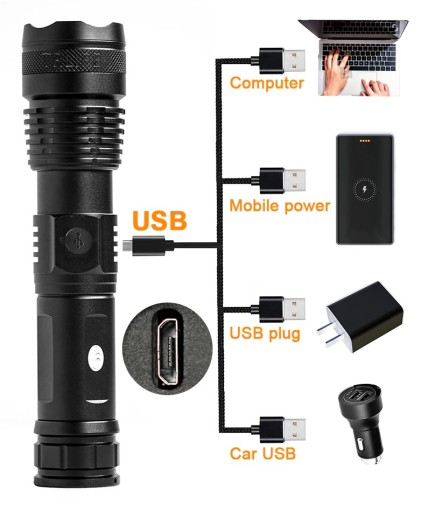 Ліхтарик XHP-50 алюмінієвий, USB акумуляторний