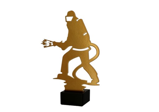 Пожежники щодня ризикують і забезпечують безпеку кожного з нас. Їх відданість і добробут повинні бути належним чином винагороджені, тому, як виробник кубків і медалей, ми пропонуємо різні пожежні нагороди. До них входять трофеї та нагороди, які можна персоналізувати, додавши вигравірувану або ламіновану табличку. Однією з таких нагород є статуетки з матового металу. Вони золотистого кольору, а форма, вирізана лазером, ідеально вписується в пожежну атмосферу. Більше того, ми розмістили трофеї на масивній мармуровій основі, надаючи всьому цьому елегантний дизайн. Ці золоті нагороди, безсумнівно, є статуетками, не схожими на будь-які інші, які змусять пожежників відчути свою особистість і цінність.