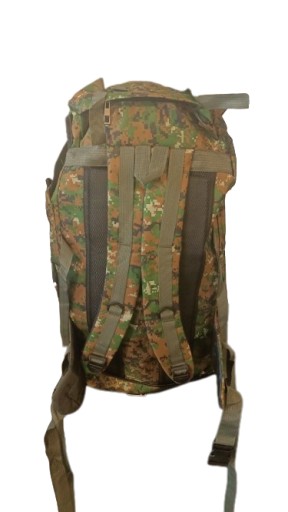 Він оброблений ремінцями MOLLE, що дозволяє встановити додаткові мішечки/мішечки. Компресійні ремені дозволяють стиснути його і таким чином зменшити розмір.