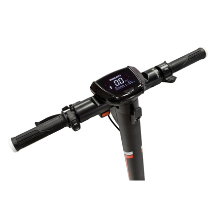 Електросамокат оснащений мінімалістичним кермом у формі Т. Дизайн керма створює візуальне враження мінімалізму та легкості. Кермо має інтуїтивно зрозумілий 3,5-дюймовий світлодіодний дисплей, який забезпечує повний контраст і видимість у будь-який час дня чи ночі! Інтерфейс користувача має дуже чітку видиму інформацію, таку як швидкість, відстань, рівень заряду акумулятора та інформацію про круїз-контроль та освітлення. Додатковою перевагою дисплея є вбудований порт USB-A, який дозволяє підключити телефон.