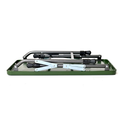 Практичний кемпінговий стіл, оснащений чотирма незалежними регульованими складними ніжками. Стільниця виготовлена з міцного матеріалу, який легко миється. Можливість установки на великій висоті на нерівній місцевості. Польське виробництво