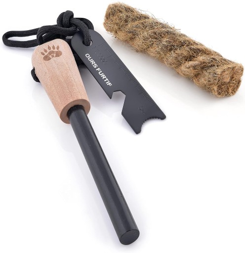 ПРОСТОТА ТА ЕФЕКТИВНІСТЬ Легко та швидко запаліть понад 15 000 запалів завдяки високоякісному стержню з ферроцерію шириною 10 мм і довжиною 7 см, а також ефективному захопленню завдяки ручці. ЕКСТРЕМАЛЬНІ УМОВИ Завдяки водонепроникній палиці ви зможете використовувати її за будь-яких погодних умов і будь-де. Ідеально підходить для ситуацій виживання, цей набір ніколи вас не підведе. БАГАТОФУНКЦІОНАЛЬНА Високостійка гратуарна лінійка для точних вимірювань і масштабу карти. Відкривачка для пляшок. Поставляється з ящиком з сосни. ПОРТАТИВНИЙ Легкий і зручний для транспортування, ви можете зберігати його в футлярі, повісити на ремінь сумки або розмістити на зап'ясті чи шиї. Французький бренд, який гарантує вам тривалу якість продукції, а також легкодоступну підтримку. Ваше задоволення є нашим пріоритетом.
