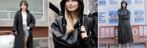 Плащ дуже довгий, а також має капюшон із зав'язками на кінці. Ідеальний захист від дощу. Капюшон на зав'язках, який захищає голову і волосся від дощу.