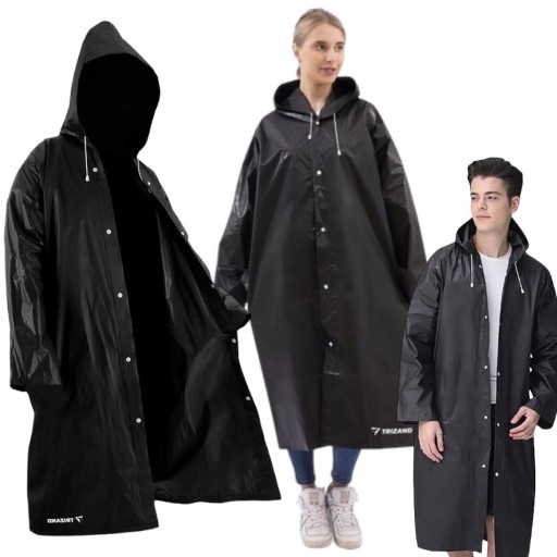 Плащ дуже довгий, а також має капюшон із зав'язками на кінці. Ідеальний захист від дощу. Капюшон на зав'язках, який захищає голову і волосся від дощу.