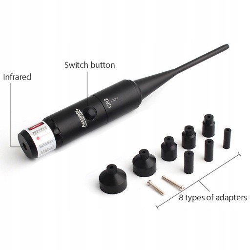 - RED BORE SIGTER від 22 кал до 0,50 калорій легкий і простий у використанні. Він поставляється з 8-компонентними адаптерами для встановлення калібрів від .22 до .50.