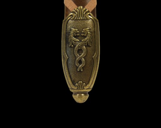Копія повністю виготовлена зі сплаву цинку та алюмінію. Головка ручки має круглу форму з вигравіруваним написом «excalibur». Хрестовина з вигравіруваними зображеннями драконів і солярним символом всередині.