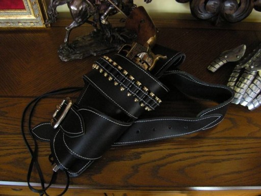 Перед вами чудовий шкіряний ремінь з патронами для одного револьвера. Це був неодмінний елемент ковбойського одягу. Окрім ременя, йому також потрібен був револьвер, а інші його аксесуари включали картату сорочку, джинси, капелюх і черевики на шпорах. Цей елегантний ремінь з патронами вам точно сподобається.
