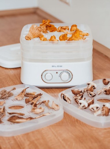 Сушарка для грибів BLOW - незамінний пристрій для всіх любителів сушених продуктів і здорового харчування. Завдяки потужності 240 Вт прилад прискорює природний спосіб сушіння без особливих зусиль і нашої участі. Сушарка відмінно підійде для сезону збору грибів, а в інші періоди буде використовуватися для сушіння овочів, фруктів, зелені, м'яса та риби.