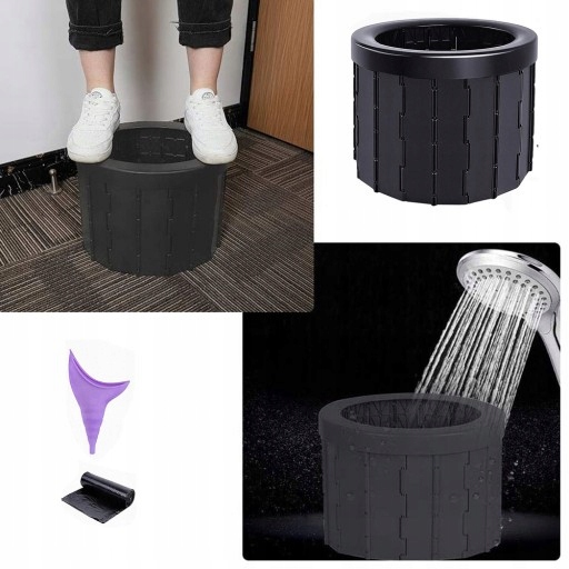 - Це ідеальний портативний складаний туалет, який можна використовувати в пробках у будь-який час і будь-де в надзвичайних ситуаціях, у кемпінгу, подорожах, верховій їзді, походах, риболовлі, катанні на човнах, у міжміських поїздках, на пляжах, у відкритому повітрі, будівництві площ тощо.