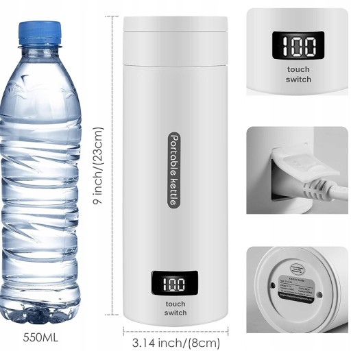 ☕【Легко носити】: міні-пляшка для води для подорожей важить лише 0,5 кг і має розміри приблизно 80*80*230 мм. Маленький і портативний, його легко зберігати та переносити, не займаючи місця. Під час нагрівання портативний чайник може додати до 380 мл води.