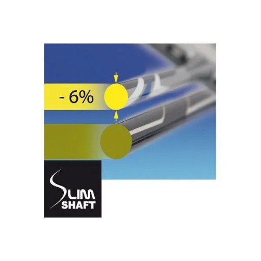 - Новий тонкий стрижень зі зменшеним діаметром приблизно на 0,5 мм, що забезпечує дуже легку масу ракетки та знижений опір повітря, що призводить до кращого маневрування та вищої швидкості човника.