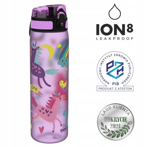 Дитяча пляшка для води Ion8 — це безпечна, легка та міцна, стійка до падіння пляшка для води. Ідеально підходить для дитячого садка та школи. Має захист від випадкового відкриття та форму, що дозволяє легко пити однією рукою. Підходить для гарячих і холодних напоїв. Веселі барвисті візерунки заохочують пити воду.