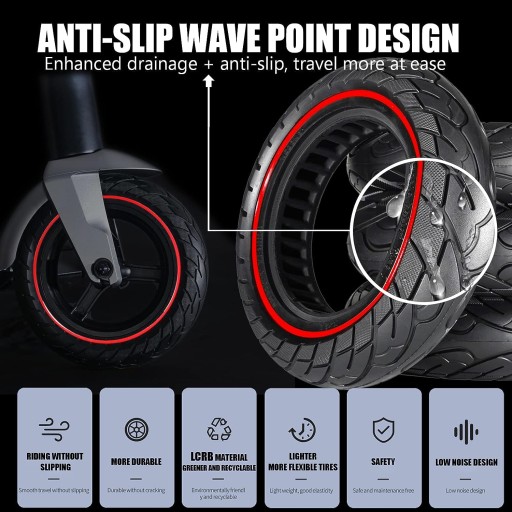 10-дюймове суцільне колесо з більшою шириною протектора, яке перевершує масивні колеса, доступні на ринку, з точки зору комфорту та безпеки. Підвищте комфорт водія та зменшіть нерівності під час руху.