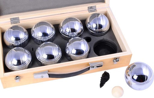 - Набір м'ячів для петанку з металу в красивій дерев'яній коробці.