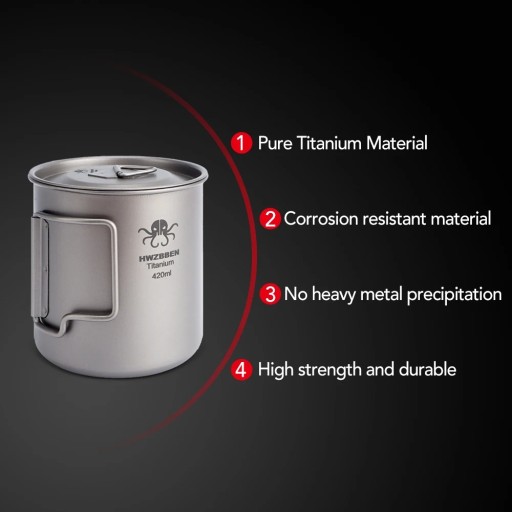 Ця чашка об’ємом 420 мл виготовлена з титанового матеріалу, надлегка та б. Вона чудово підходить для кемпінгу, походів, подорожей і домашнього використання.