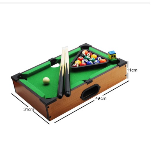 - елементи: стіл, 2 кия з крейдою, набір кульок з трикутником