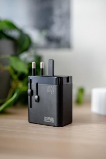 Дорожній адаптер Newell GaN 65 Вт дозволить мінімізувати кількість зарядних пристроїв, які ви використовуєте щодня, коли заряджаєте електронні пристрої. Це ідеальний вибір для людей, які часто подорожують і хочуть, щоб їхній багаж був якомога компактнішим. На корпусі зарядного пристрою ви знайдете розетку змінного струму та 3 порти – роз’єм USB типу A та 2 роз’єми USB-C. Ви можете використовувати їх усі одночасно!