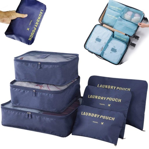 ОРГАНІЗАТОРИ ДЛЯ ВАЛІЗИ СІТКИ ДЛЯ ПРАНЯ 6 шт., ТЕМНО-СИНІ