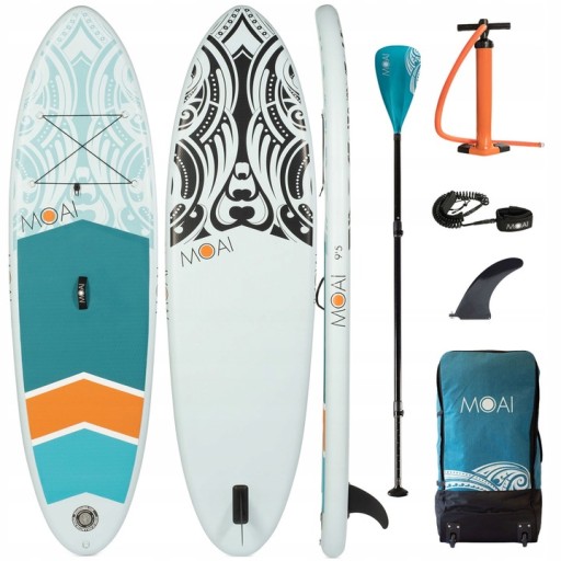 MOAI — голландський бренд, натхненний жителями Полінезії, які винайшли мистецтво паддлбордингу. Торгова марка MOAI походить від монолітних людських статуй «моаї», створених жителями острова Рапа-Нуї, також відомого як острів Пасхи. Острів був відкритий і заселений полінезійськими авантюристами та дослідниками, які подорожували Тихим океаном. Вважається, що ці статуї були створені жителями Рапа-Нуї на честь своїх предків – дослідників моря. MOAI піклується про найкращий досвід використання своїх дощок. Стандартно SUP від цієї компанії оснащені всіма необхідними елементами та аксесуарами, необхідними для негайного використання дошки відразу після її вилучення з коробки. Всі елементи набору потім зручно зберігати в транспортному рюкзаку на колесах.