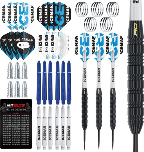 - У набір входить: 1 набір латунних стволів (22 г), 4 набори дротиків Iceman, 2 набори полікарбонатних стрижнів, 2 х набори нейлонових стрижнів, 2 х набори чохлів для дротиків, 5 х комплектів запасних стрижнів кільця.