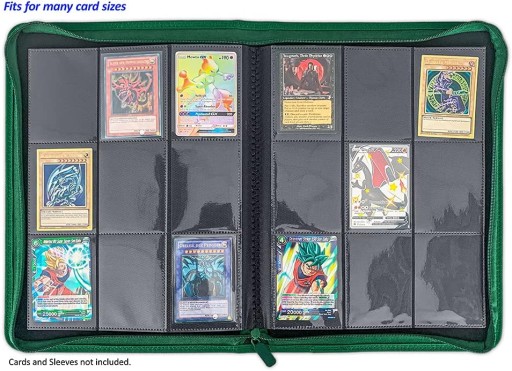 - Arkero-G: 18-кишенькова швидкозмінна папка на блискавці зеленого кольору. Високоякісний змінний колекційний альбом зі штучної шкіри складається з 20 міцно скріплених сторінок, кожна сторінка має 9 кишень на передній і задній сторонах.