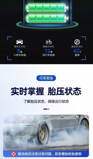 Автоматичний велосипедний і автомобільний насос з павербанком використовується для ефективного і швидкого накачування різних шин, м'ячів і коліс.
