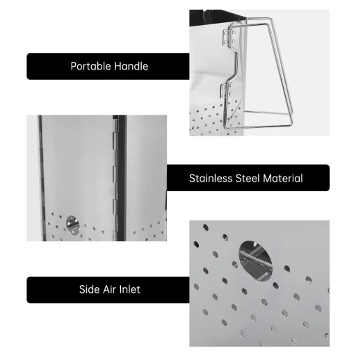 ⭐Вугільний камін має отвори великого діаметру знизу та з боків, призначені для розпалювання запальнички або газети для розпалювання деревного вугілля. Ці великі вентиляційні отвори гарантують чудову циркуляцію повітря та виділення тепла від деревного вугілля. ⭐Технічні характеристики: ⭐Матеріал: нержавіюча сталь ⭐Розмір: 16*16*29 см/ 6,3*6,3*11,4 дюйма ⭐Вага: 1,7 кг/ 3,7 фунта ⭐Пакунок: ⭐1* Вугільна запальничка ⭐1 * Сумка для зберігання