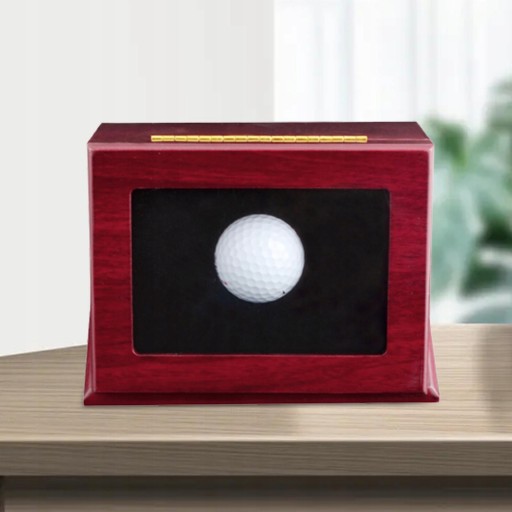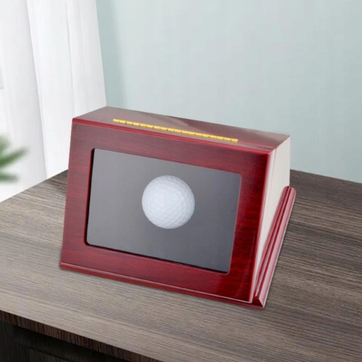 [Декоративна коробка для м’яча для гольфу]: дерев’яний протектор коробки для м’яча для гольфу для прикраси та захисту, елегантного червоного кольору з легким блиском, з чорною підкладкою для захисту поверхні м’яча для гольфу від подряпин.