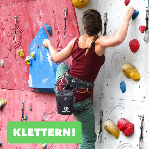 Хто хоче мати дві різні роботи з магнієм? відсутність. Ми створили наш крейдовий мішок таким чином, щоб його можна було використовувати. Наповнений крейдою, він стійкий і великий для боулдерінгу – я можу прив’язатися для лазіння.