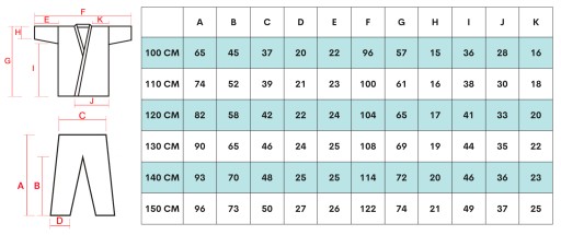 Сучасний крій кімоно забезпечує точність виконання ударних прийомів. Широкі та посилені штани забезпечують велику свободу рухів, що важливо під час ударів ногами. Завдяки еластичній стрічкі та регулюванню шнурків кімоно можна підігнати під потреби фігури. Ідеально підходить як хлопчикам, так і дівчаткам.
