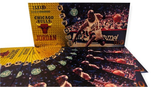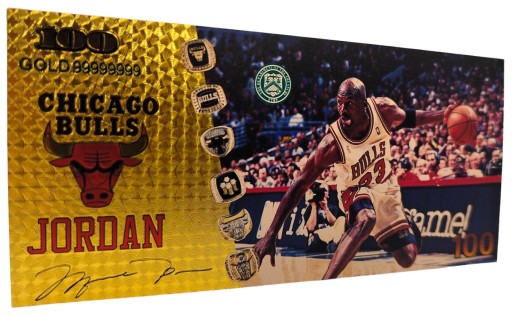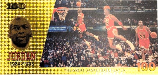 Красива позолочена колекційна банкнота із зображенням Майкла Джордана.
