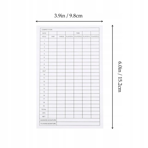 Двосторонній принт, однакова задня та передня сторона. Підходить для звичайної системи показників для запису даних результатів у гольф.