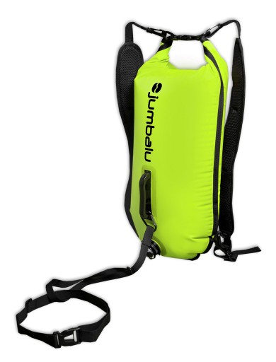 Буй безпеки Jumbalu - це ідеальне поєднання безпеки та практичного використання. Регульована довжина ременя покращить комфорт під час плавання. Буй має одну надувну камеру. Бостонський клапан має замок, що запобігає виходу повітря. Додаткова функція - вбудований свисток на засувку. Буй Jumbalu має знімні плечові ремені. Цю модель можна використовувати двома способами: рюкзак або страхувальний буй! Додаткова зручна ручка полегшує перенесення.