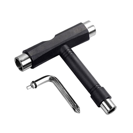 Багатофункціональний T-подібний для регулювання гайок осі, кріпильних деталей і гайки шкворня на верхній частині вашої вантажівки та працює з усіма типами скейтбордів