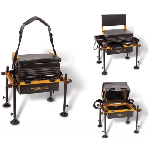 Black Magic® S-Line Box – сидіння Black Magic® S-Line продовжує традиції бренду Black Magic®, який пропонує продукцію високої якості за чудовою ціною. Це міцне сидіння дуже легке, але дуже просторе. Він включає в себе бічний ящик на всю довжину, два висувних ящика, що відкриваються спереду, і глибоку нижню касету, в яку можна вмістити, наприклад, котушки. Сидіння з товстою оббивкою регулюється по висоті для повного комфорту.Сидіння також має зручну спинку, яку можна скласти для транспортування. Міцні ніжки зі стандартним діаметром 25 мм з ніжками дозволяють кріпити широкий спектр аксесуарів. Зручне, стійке і міцне сидіння, яке підійде багатьом рибалкам.