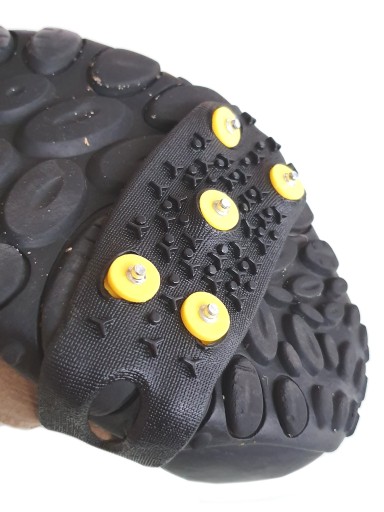 ✅Кожна накладка оснащена 5 шипами. Шипи розміщені таким чином, щоб використовувати місця найбільшого тиску стопи під час ходьби.Накладки не мають зайвих пряжок і ремінців.