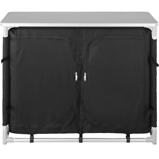 Практична кемпінгова шафа TecTake забезпечує багато місця для зберігання, незважаючи на невеликі розміри. Монтаж і демонтаж дуже легкий і швидкий. Кухонний ящик оснащений міцною стільницею та шістьма великими відділеннями для зберігання. Достатню вентиляцію забезпечує сітка на тильній стороні. Ніжки можна регулювати окремо, завдяки чому кухонний куточок стійко стоїть на будь-якій поверхні. Простора кемпінгова шафа TecTake збереже порядок на вашій кухні навіть на вулиці.